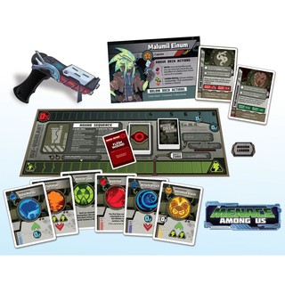 The Menace Among Us In space, no one will hear you scream. You must work together to restore power before the air runs out… but hidden among you. The impostor can use sabotage to cause chaos, making for easier kills and better alibis. Your agenda card sets a team goal and an individual goal.